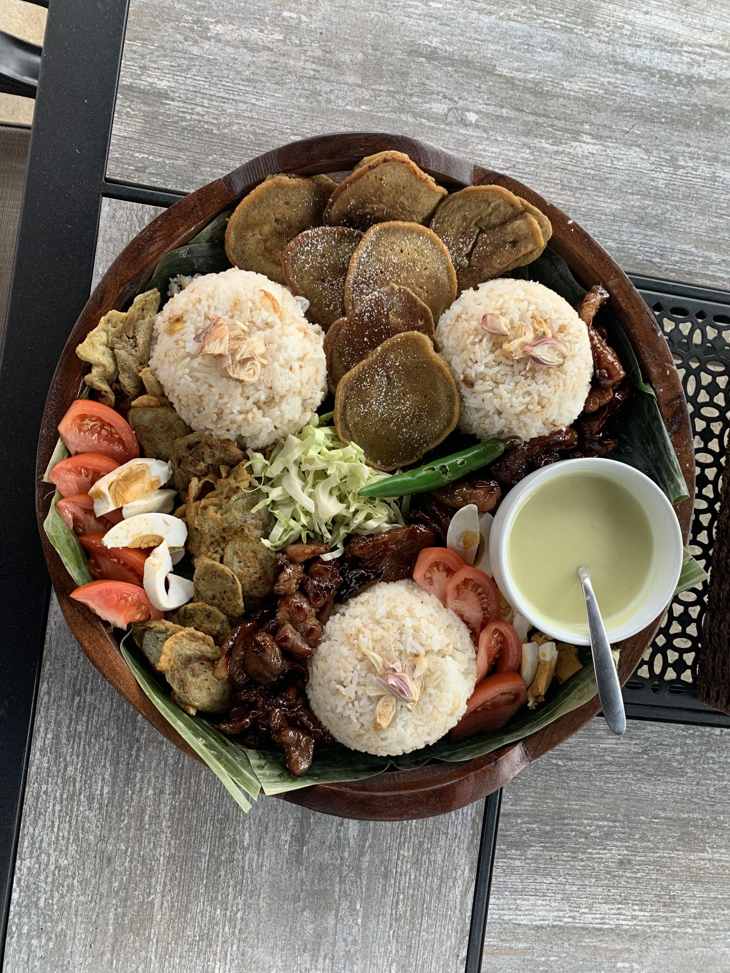 Kamayan is a traditional Filipino feast that involves a large table lined with banana leaves and topped with classic Kapampangan dishes like crispy pasta, fried fish, and an assortment of barbecue.